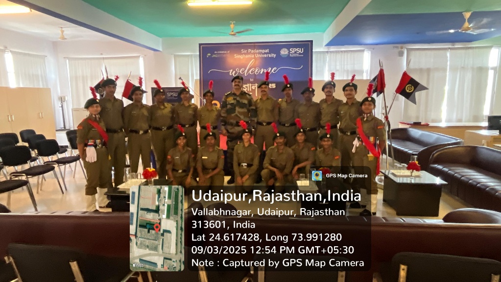 Sir Padampat Singhania University (SPSU) has been allotted a sub-unit of the NCC army wing, consisting of 80 cadets, by the Commanding Officer 2 Raj R & V Regt NCC at College of Veterinary and Animal Science, Navania, Udaipur. The allotment has received approval from DDG, NCC Directorate Rajasthan, Jaipur, and NCC Group Headquarters, Udaipur. Lt. Dr. D S Chouhan, Associate Professor of Mathematics & Associate NCC Officer, expressed pride in this achievement and highlighted that the 2 Raj R & V Regt NCC Navania shall also offer an exclusive horse-riding facility for NCC cadets. Lt. Dr. D S Chouhan has played a key role in grooming NCC cadets at SPSU, with over 20 students under his guidance currently serving in the armed forces. The university’s NCC cadets actively engage in community service, organizing events such as blood donation drives. More than 1170 units of blood have been donated by students and staff over the last twelve years. Additionally, NCC cadets contribute to environmental conservation through plantation drives in adopted villages and within the SPSU campus.